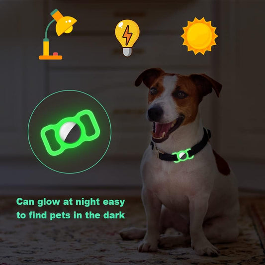 Pet Protective Case for Apple Airtag GPS Finder, Silicone Dog Cat Collar Holder for Airtag, Pet Loop Holder, Safety and Anti-Lost Tracker Case for Apple Locator Tracker, Luminous Green